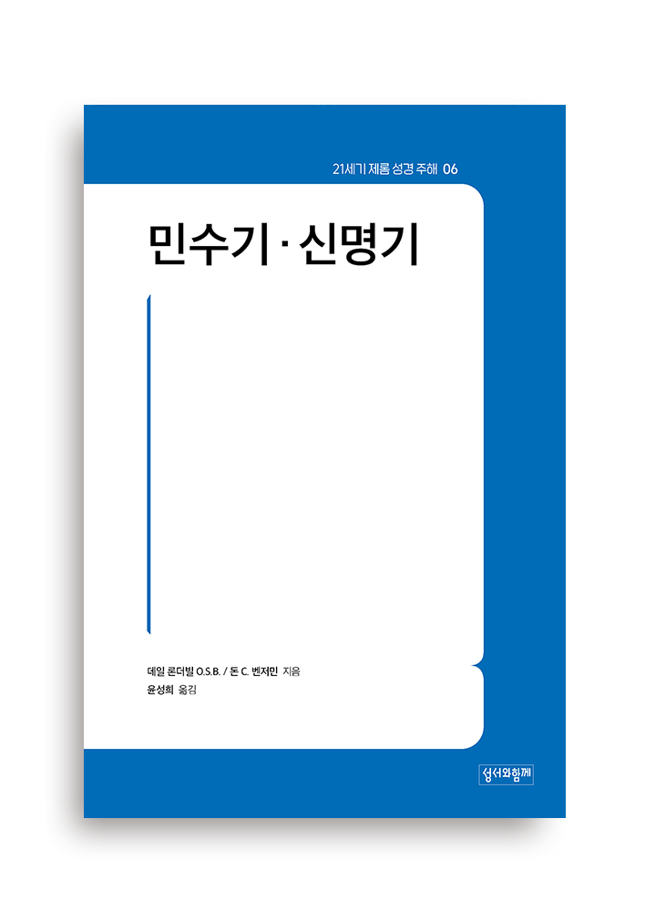 21세기 제롬 성경 주해 시리즈 제06권은 데일 론더빌의 <민수기>와 돈 C. 벤저민의 <신명기>로 구성된다. 민수기는 모세오경 중 상대적으로 관심이 적지만, 이스라엘의 광야 여정 40년의 이유와 모세의 죽음, 죄의 기억을 통한 신앙 성찰 등을 담은 중요한 책이다. 저자 데일 론더빌은 본문을 종합적으로 해설하면서, 그 형성 과정과 신학적 메시지, 특히 “광야에서 오직 야훼를 향한 절대적 신뢰만이 생명의 길”이라는 주제를 간결하고 명료하게 제시한다. 신명기는 구약의 중심으로, ‘하느님의 백성’이라는 개념을 통해 구약과 신약을 잇는 핵심 신학을 제시한다. 저자 돈 C. 벤저민은 성서학뿐만 아니라 고대근동학과 문화사적 접근을 결합한 폭넓은 시각으로 신명기를 접근한다. 그의 해석은 다소 낯설지만, 기존의 성경 주해 위에 새로운 통찰을 더하는 창의적 접근으로, 열린 마음으로 읽으면 신명기에 대한 새로운 이해의 길이 열릴 것이다.