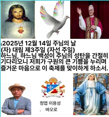 2025년 12월 14일 주님의 날 (자) 대림 제3주일 (자선 주일) 기뻐하여라. 거듭 말하니, 주님 안에서 늘 기뻐하여라. 주님이 가까이 오셨다.