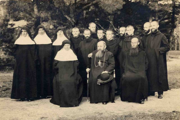 1925년 독일  툿찡 포교 베네딕도 수녀회에서 한국으로 첫 파견된 수녀들(왼쪽)과 수녀회 파견을 요청한 성 베네딕도회 덕원 수도원장 사우어 주교 아빠스(앞줄 오른쪽)와 수사들. 툿찡 포교 베네딕도 수녀회 대구 수녀원 제공