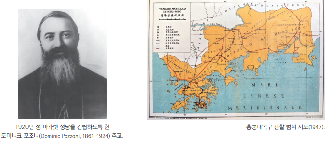 2) 당시 홍콩 대목구는 교황청 외방선교회(Pontificium Institutum pro Missionibus Exteris, PIME) 사제들이 주교로 임명되고 홍콩의 여러 성당에서 사목했으며, 성 마가렛 성당의 건립과 발전에 큰 영향을 미쳤다.