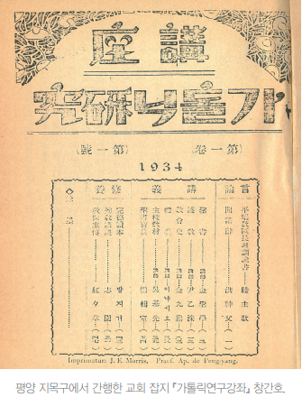 2) 『가톨릭연구강좌』는 『가톨릭연구』로 발전, 이후 『가톨릭조선』으로 변화를 거쳐 1938년 폐간되었다.