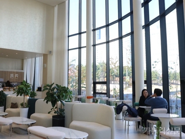 - 나눔동 1층에 있는 ‘cafe1984’는 통유리창을 통해 성당 안팎이 자연스럽게 연결되도록 설계했다. 변경미 기자