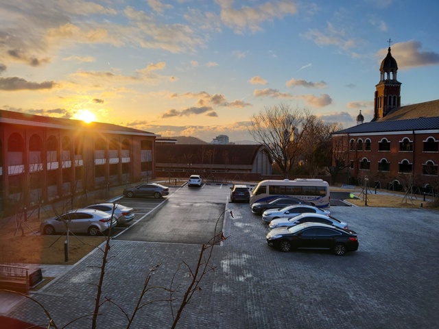 - 눈이 소복이 내린 날 인천교구 굴리엘모 공동사제관에서 바라본 교구 답동주교좌성당 전경. 사제관 너머로 아버지의 거룩한 이름을 떠올리게 하듯 햇빛이 서광(瑞光)을 비추고 있다. 이은정 잔다르크 씨 제공