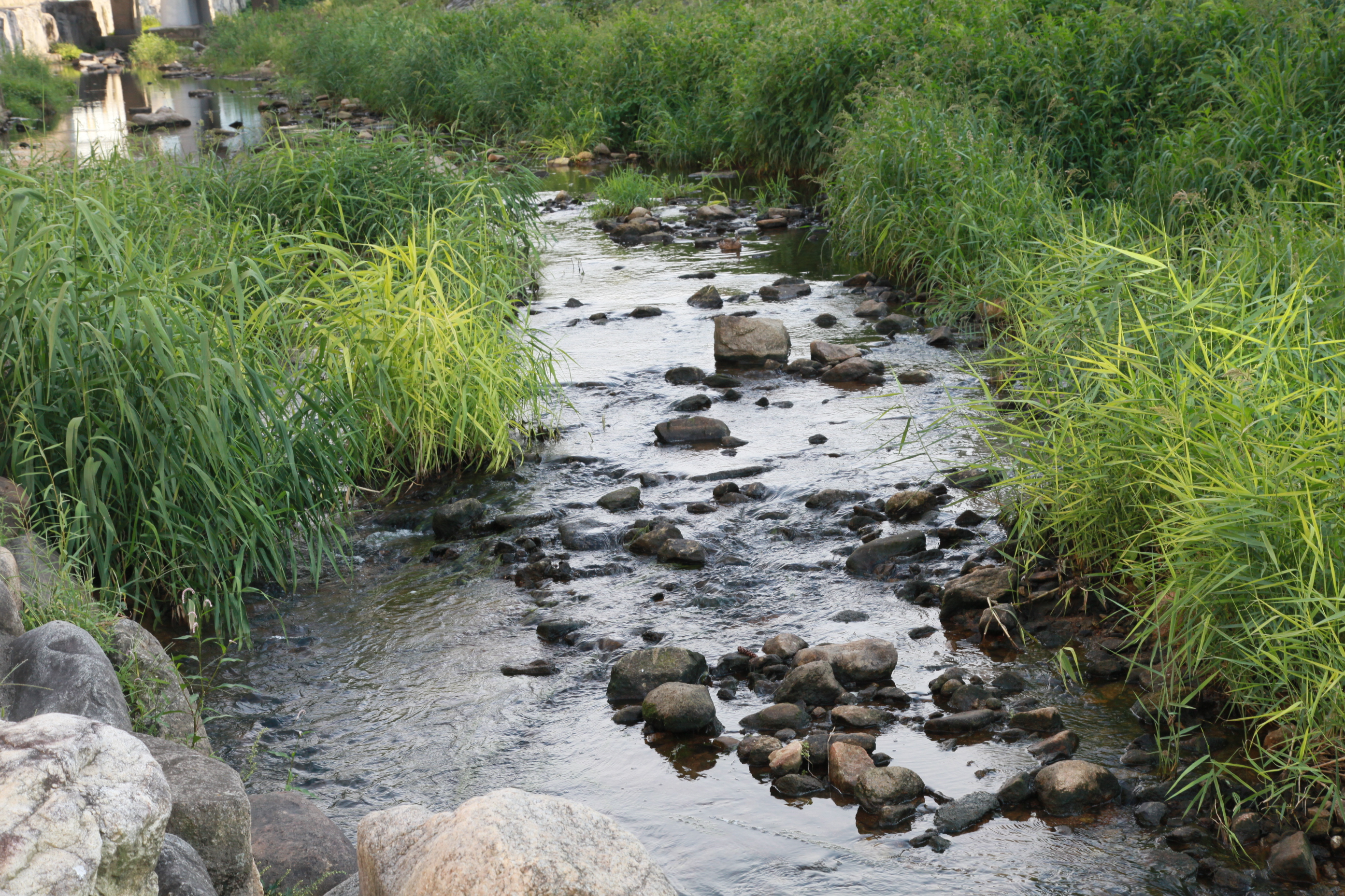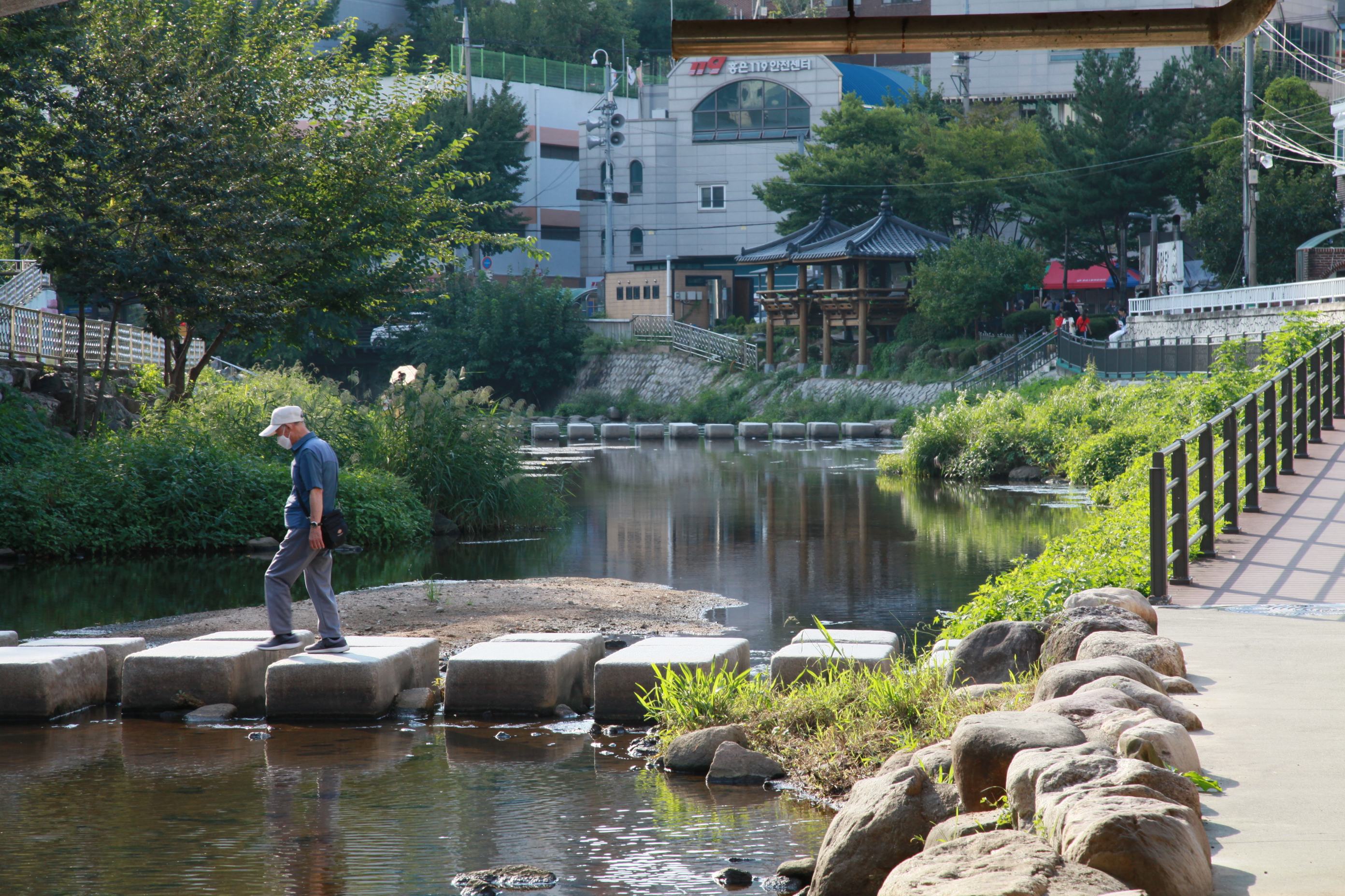 산책로가에 있는 코스모스도 담고 맑은 물이 졸졸 흐르는 물도 담고요 저 멀리