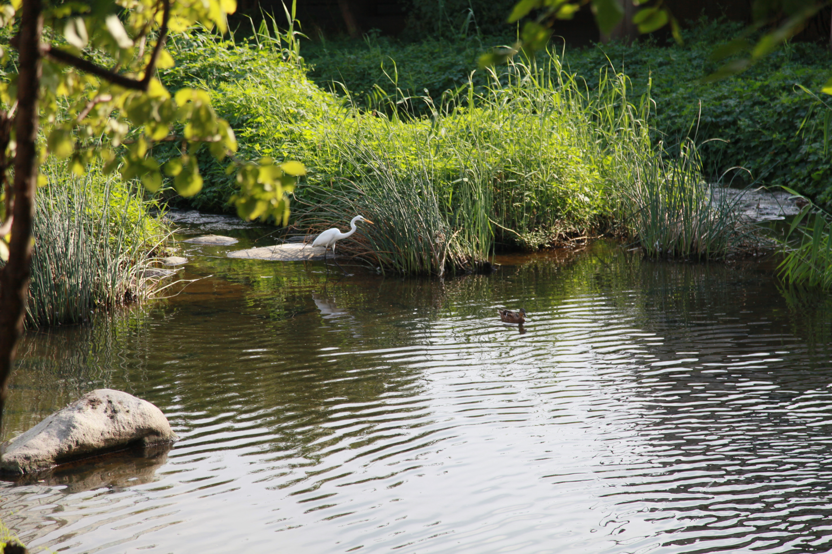 다리밑을 지나려는데 하얀 두루미(맞는것 같은데) 한마리가 개울물 가운데에 있는