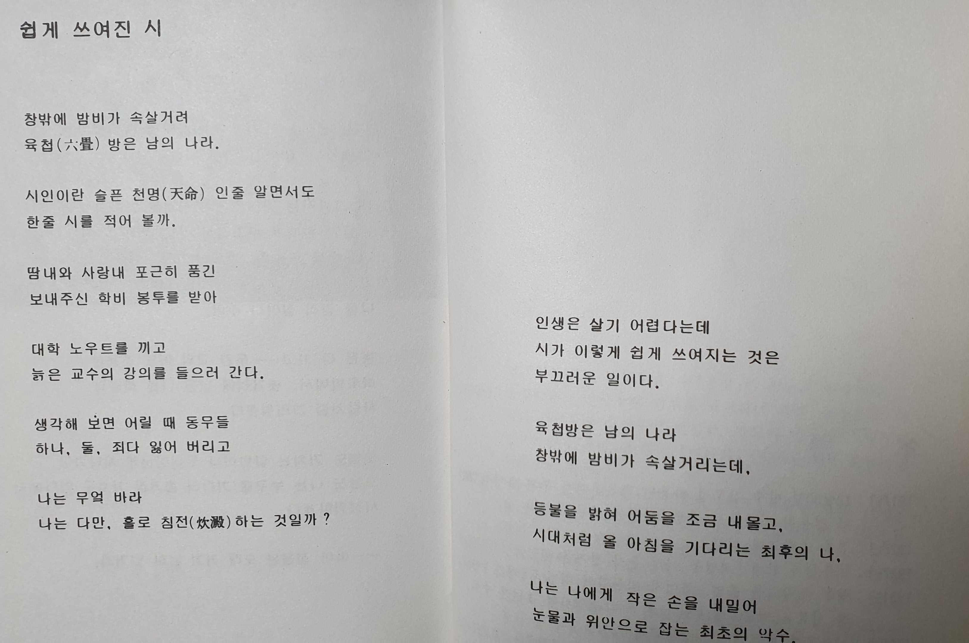 쉽게 아름다운 우리의 한글로 시를 썼다.