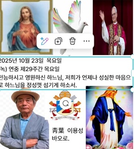 2025년 10월 23일 목요일 (녹) 연중 제29주간 목요일 하느님, 당신이 응답해 주시니, 제가 당신께 부르짖나이다. 귀 기울여 제 말씀 들어 주소서. 주님, 당신 눈동자처럼 저를 보호하소서. 당신 날개 그늘에 저를 숨겨 주소서.