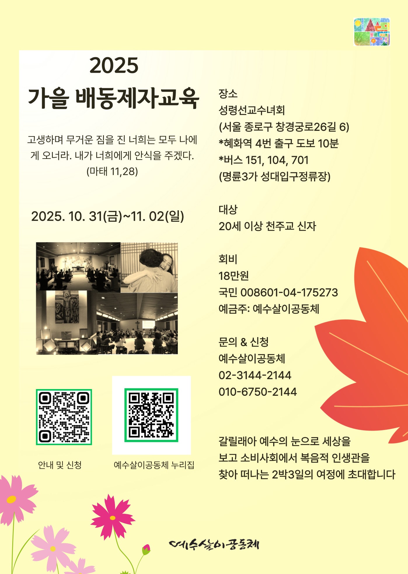 [초대합니다]예수살이공동체 2025 가을 배동제자교육(10.31~11.02) |