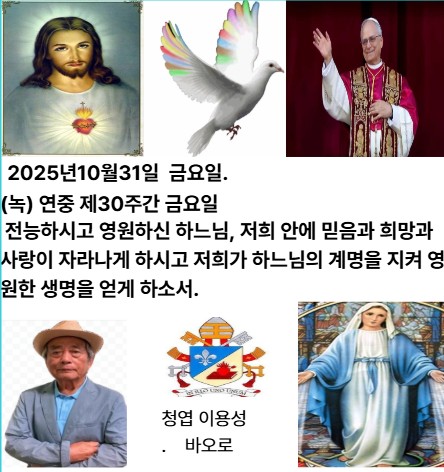 .2025년 10월 31일 금요일 (녹) 연중 제30주간 금요일 주님을 찾는 마음은 기뻐하여라. 주님과 그 권능을 구하여라. 언제나 그 얼굴을 찾아라. 64 이스라엘 들으라