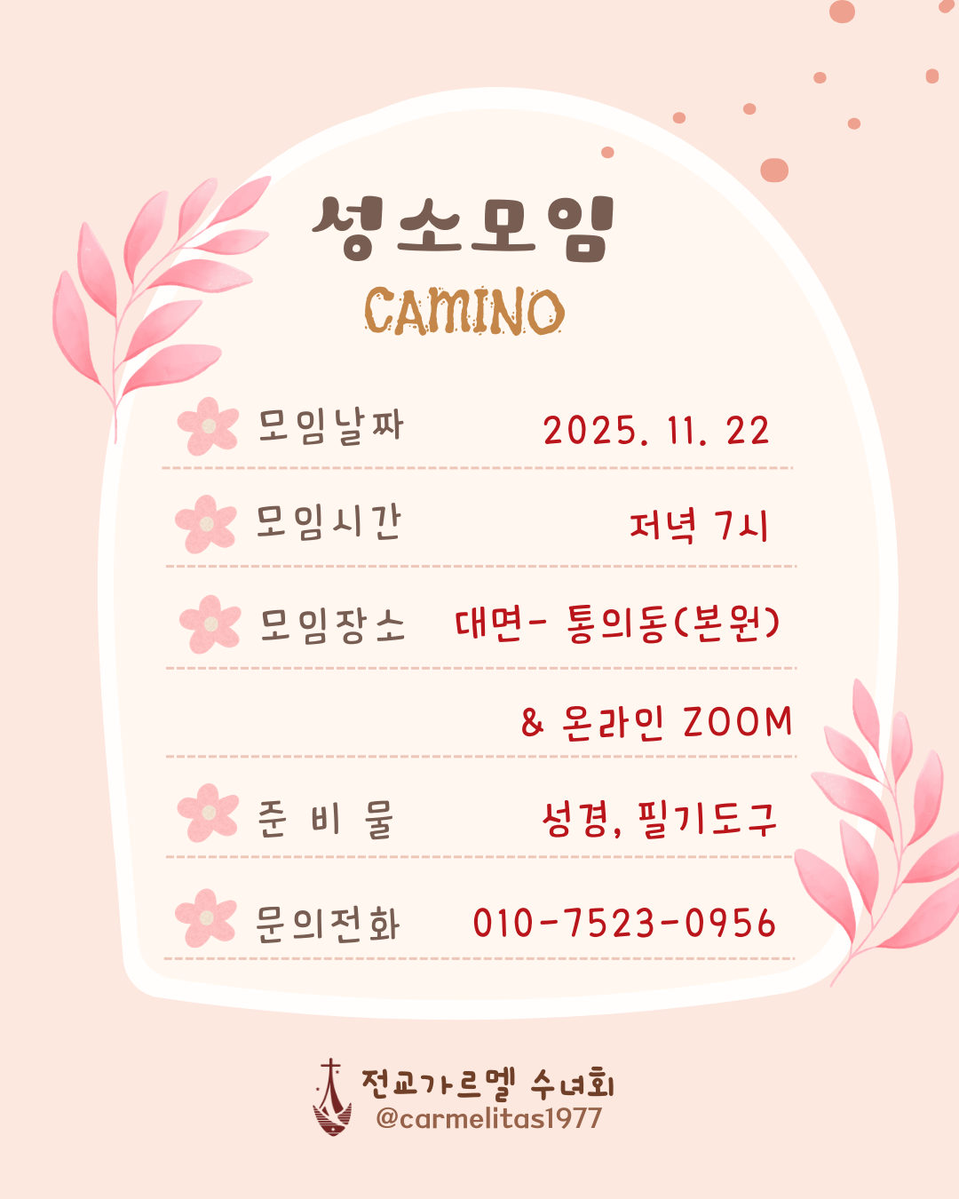 【성소모임】11월 'Camino' 성소모임 초대합니다!!! (11월22일 토요일)