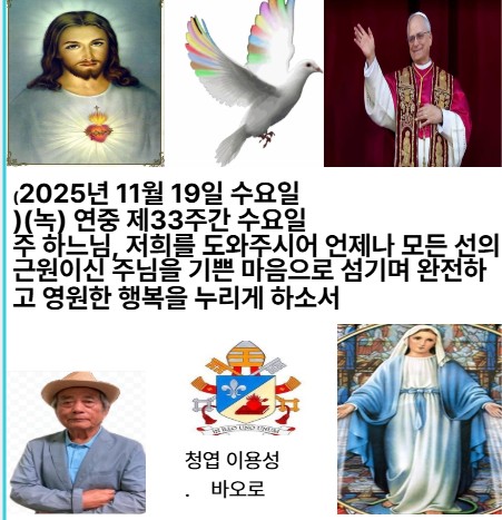 2025년 11월 19일 수요일 (녹) 연중 제33주간 수요일 주님이 말씀하신다. 나는 재앙이 아니라 평화를 주노라. 나를 부르면 너희 기도를 들어 주고, . 사로잡힌 너희를 모든 곳에서 데려오리라.