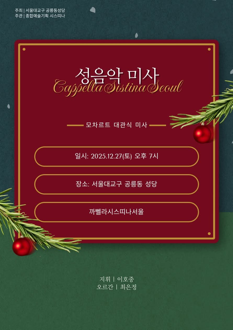Merry Christmas! 성음악을 사랑하시는 교우 여러분들 안녕하세요?