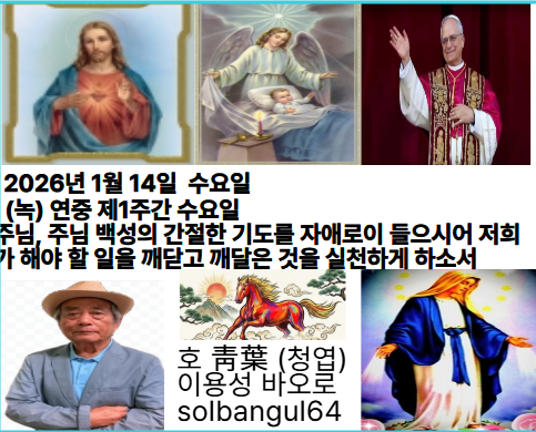 2026년 1월 14일 수요일 (녹) 연중 제1주간 수요일 나는 드높은 어좌에 앉아 계신 분을 보았네. 천사들의 무리가 그분을 흠숭하며 함께 노래하네. 보라,그분의 나라는 영원하리라