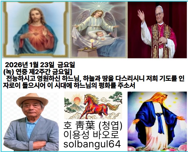 2026년 1월 23일 금요일 (녹) 연중 제2주간 금요일 하느님, 온 세상이 당신 앞에 엎드려 당신을 노래하게 하소서. 지극히 높으신 분, 당신 이름을 노래하게 하소서.