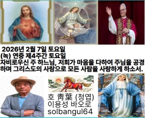 2026년 2월 7일 토요일 (녹) 연중 제4주간 토요일 오늘 전례 [백] 복되신 동정 마리아 주 하느님, 저희를 구하소서. 민족들에게서 저희를 모아들이소서. 당신의 거룩하신 이름을 찬송하고, 당신을 찬양하여 영광으로 삼으오리다.