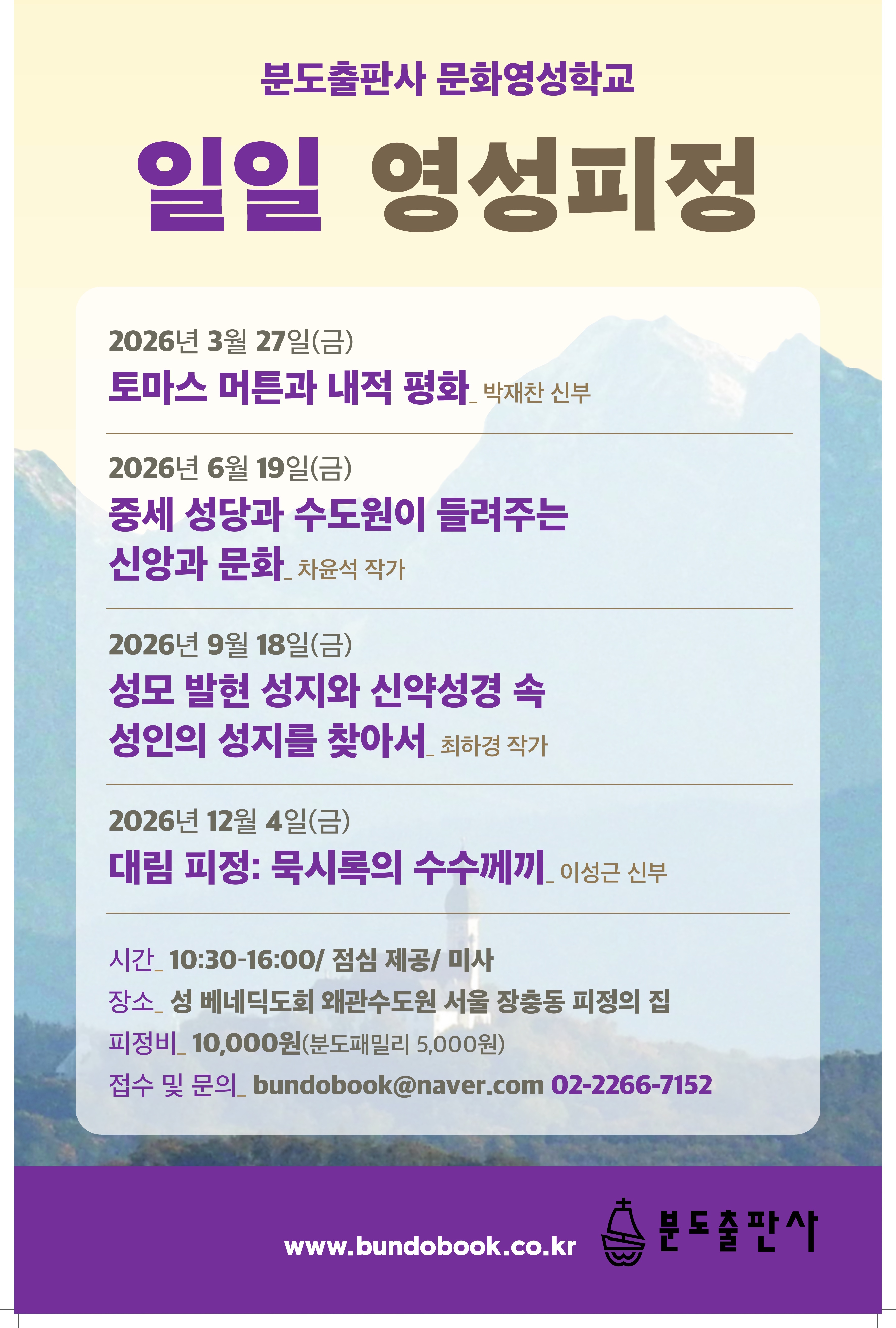 [분도출판사] 문화영성학교 - 2026년 일일 영성 피정