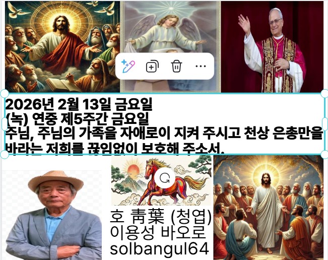 2026년 2월 13일 금요일 (녹) 연중 제5주간 금요일 어서 와 하느님께 경배드리세. 우리를 내신 주님 앞에 무릎 꿇으세. 그분은 우리의 하느님이시네