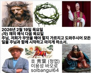 2026년 2월 19일 목요일 (자) 재의 예식 다음 목요일 주님께 부르짖으면, 그분은 내 목소리 들으시고, 많은 사람들이 대적하여도 나를 구하시리라. 너의 근심 걱정 주님께 맡겨라 그분이 너를 붙들어 주시리라.
