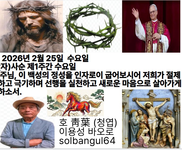 2026년 2월 25일 수요일 (자) 사순제 1주간 수요일 주님, 예로부터 베풀어 오신 당신의 자비와 자애 기억하소서. 원수들이 저희를 짓누르지 못하게 하소서. 이스라엘의 하느님, 모든 곤경에서 저희를 구하소서