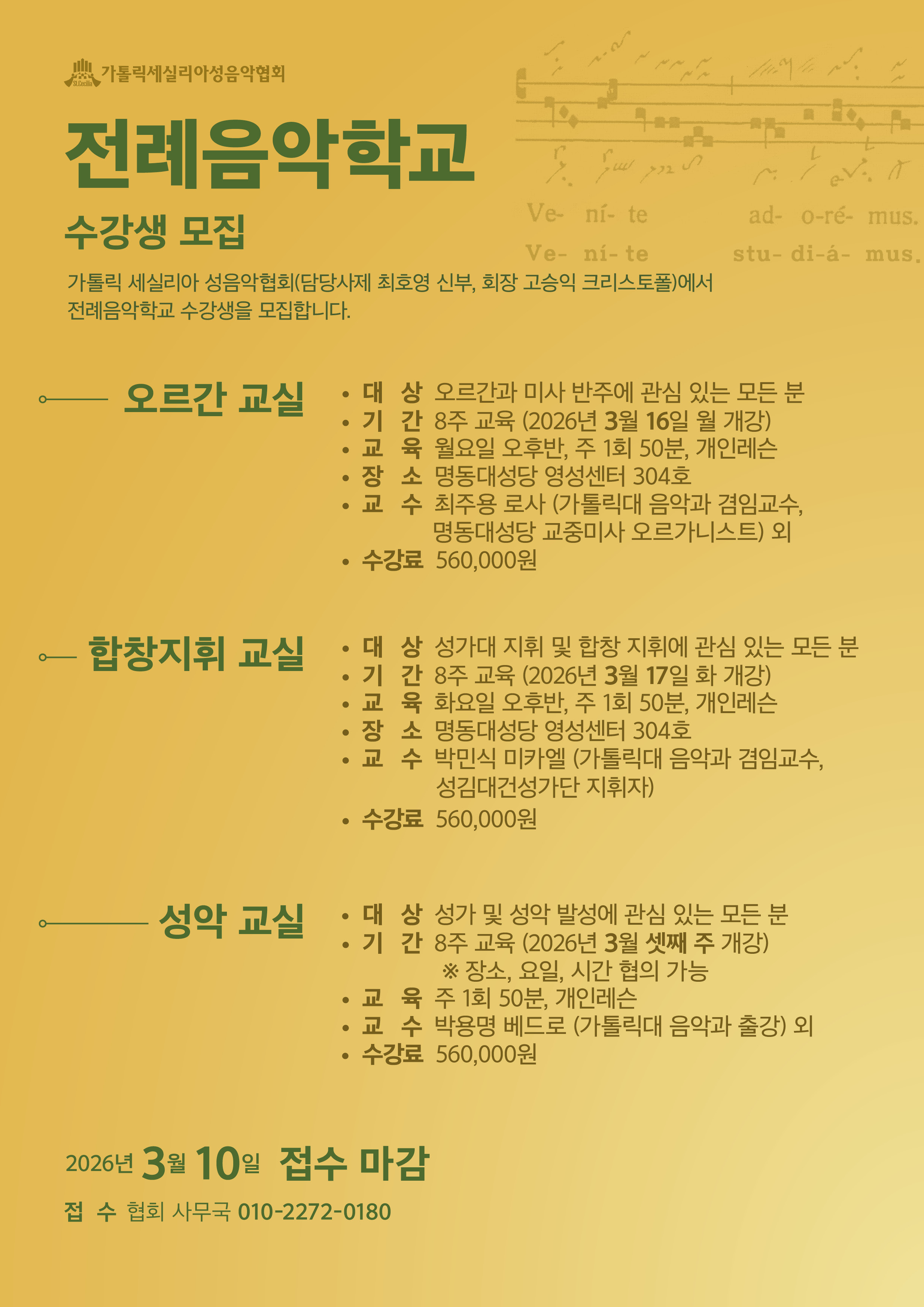전례음악학교 수강생 모집