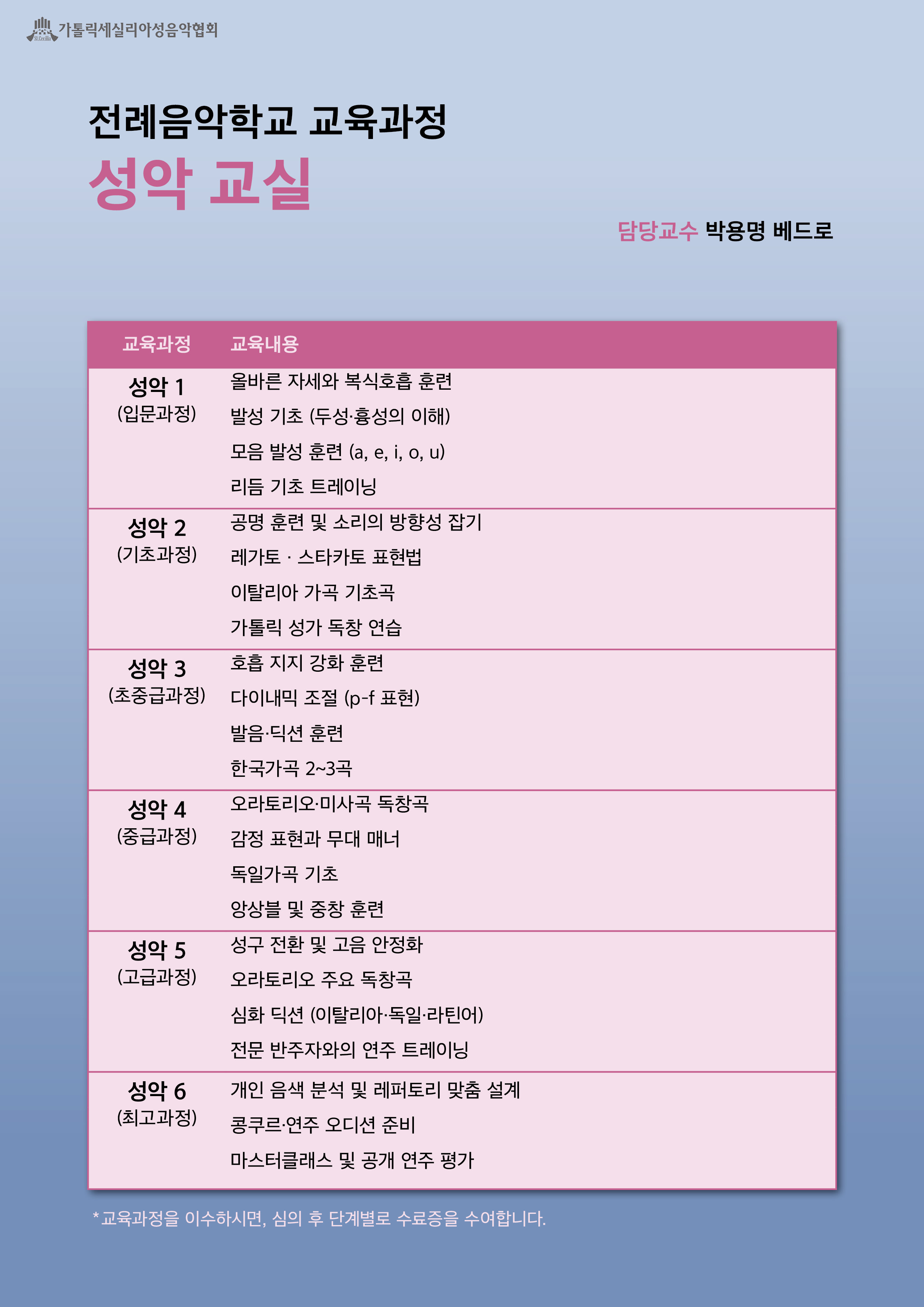 성음악봉사자 양성을 위한 ‘전례음악학교’ 수강생을 모집합니다