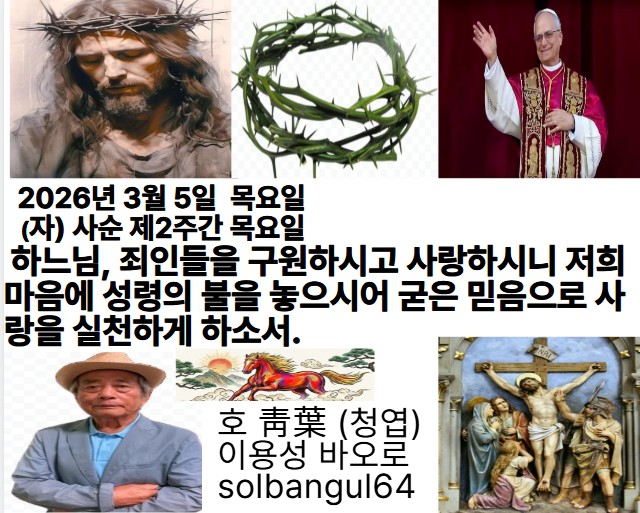 2026년 3월 5일 목요일 (자) 사순 제2주간 목요일 하느님, 저를 꿰뚫어 보시고 제가 걸어온 길 살펴보소서. 저의 길 굽었는지 보시고 영원한 길로 저를 이끄소서.