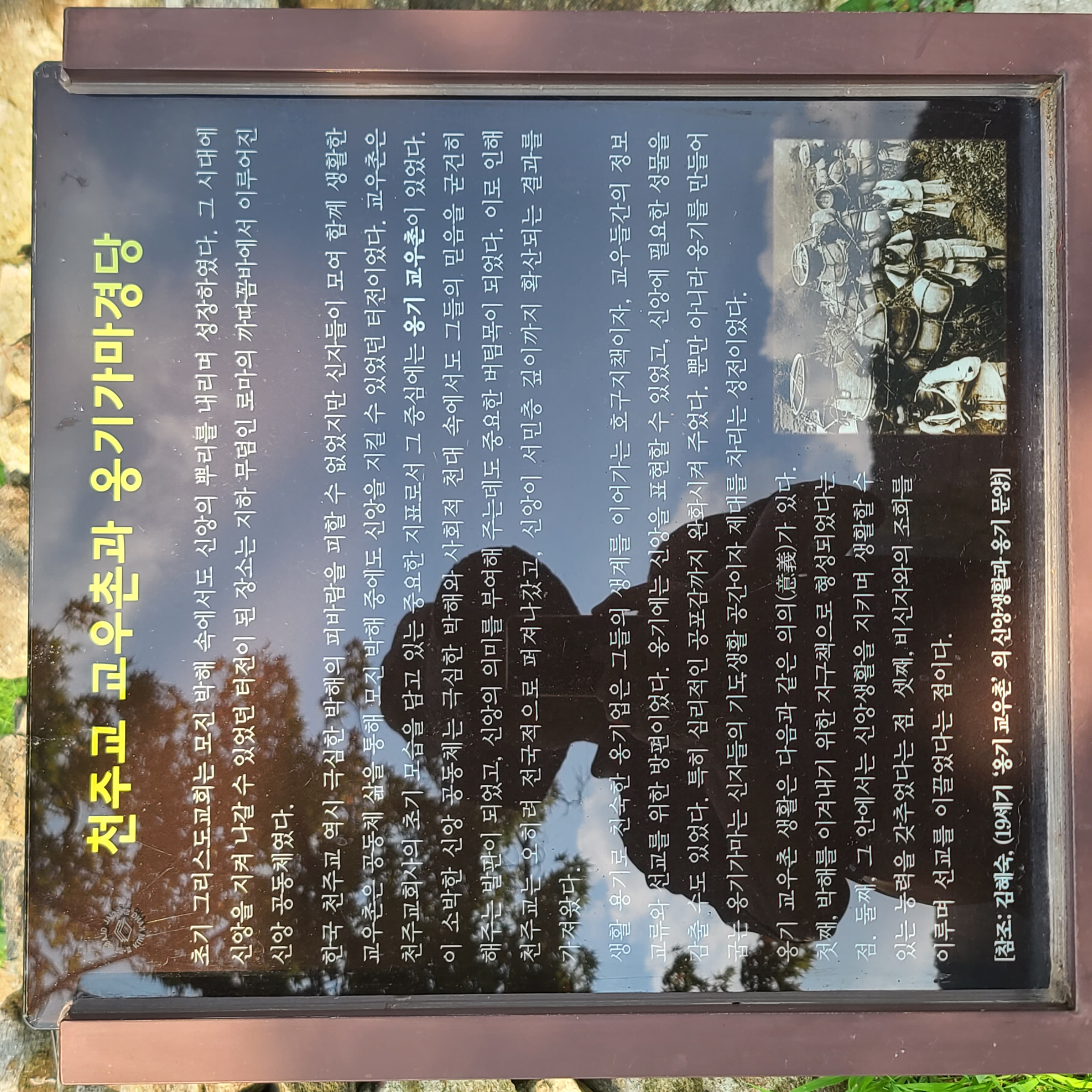 그끝에 유항검순교자 가족들의 묘가 나란히 누워 그날의 복된 삶의 여정속.. 평화롭고 행복한 천상생활을 나누어주며 거룩한 변모의 그날의 산상사건을 미리 보여주는 듯한 착시속에서 잠시 어리둥절... 머물고 싶다는 피세정령의 시간을 만난다.