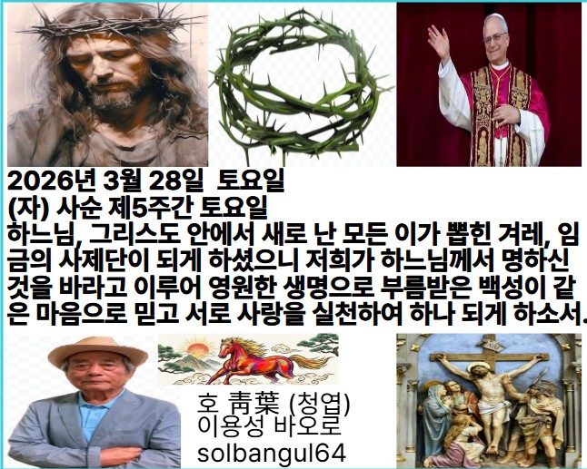 2026년 3월 28일 토요일 (자) 사순 제5주간 토요일 주님, 멀리 떠나 계시지 마소서. 저를 도우소서. 저는 인간도 아닌 구더기, 사람들의 우셋거리, 백성의 조롱거리가 되었나이다.