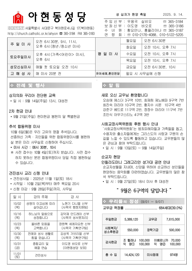 안녕하세요. 아현동성당 홈페이지입니다.