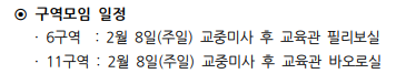 · 2구역: 6/14(토)오후7시교육관마티아실