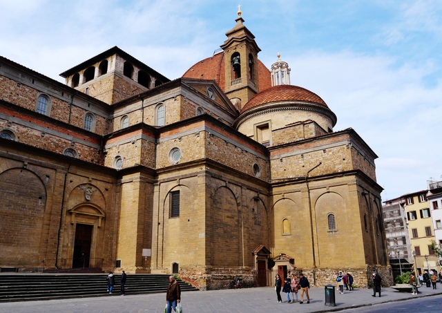 이에 레오 10세 교황은 당대의 이름 있는 건축가들인 줄리아노 다 상갈로, 라파엘로, 안드레아 산소비노, 미켈란젤로를 설계 공모에 초대하였고, 그 가운데 미켈란젤로의 안이 채택되었습니다. 미켈란젤로는 시공에 필요한 도면과 목재 모형을 만들었는데, 석재의 수급 문제로 결국은 공사가 취소되어 지금까지도 파사드는 마감 없이 남아 있습니다. 이를 계기로 미켈란젤로는 피렌체 머물며 ‘메디치 경당’과 ‘도서관’의 설계도 맡게 되었습니다.