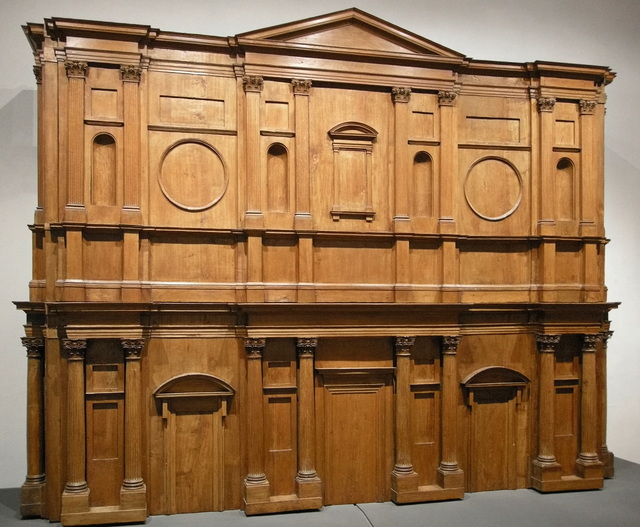 - 산 로렌초 성당의 파사드 설계 공모에 제출된 미켈란젤로의 목재 모형. 실제 성당의 파사드는 석재의 수급 문제로 지금까지도 마감 없이 남아 있다. 출처 위키미디어