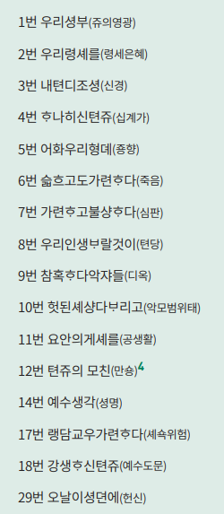 1) 임현경, 『조선어 성가』(죠션어셩가, 1924년)를 부분적으로 참조하였다.
