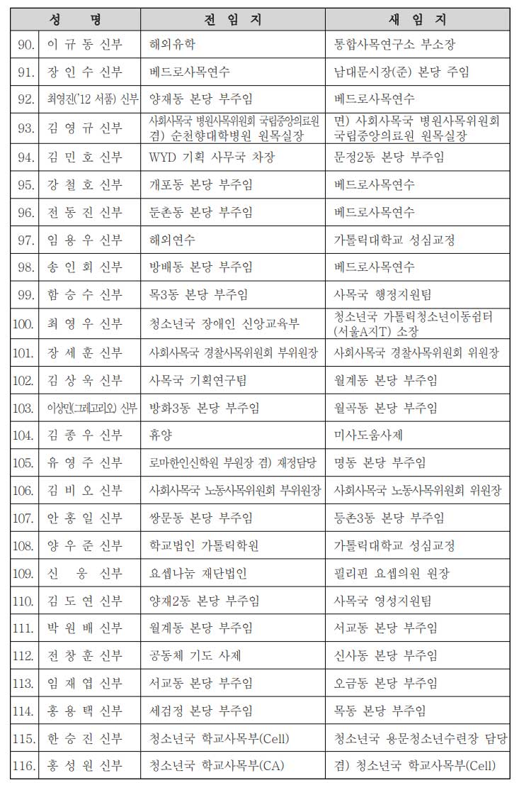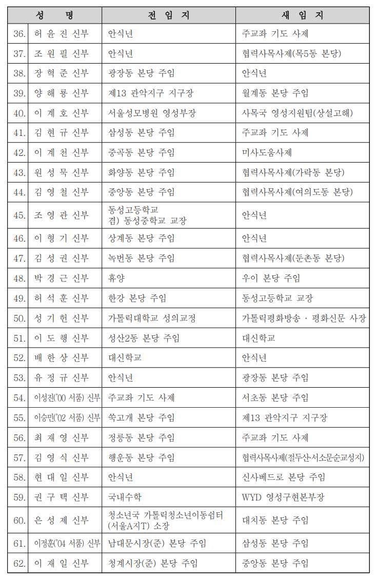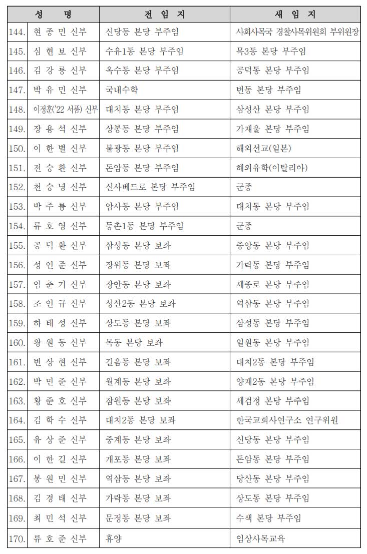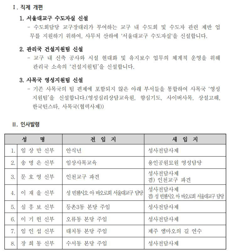 [서울대교구] 사제 인사발령 |