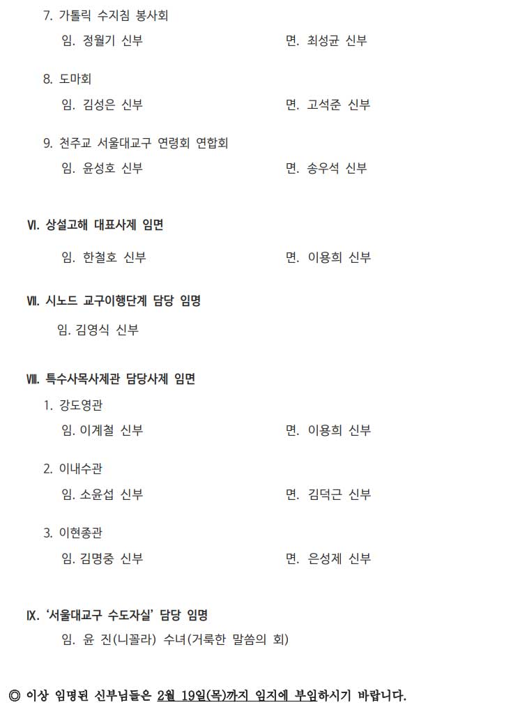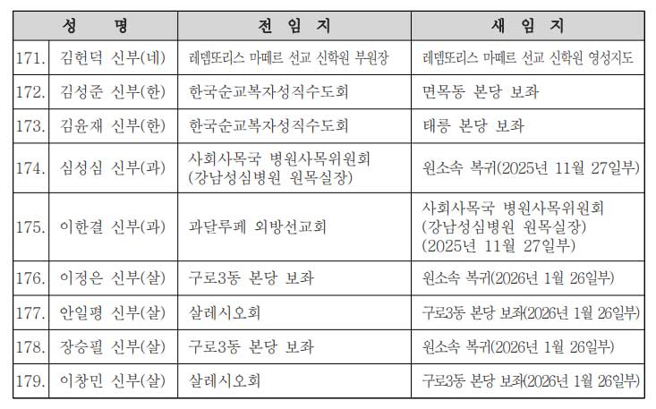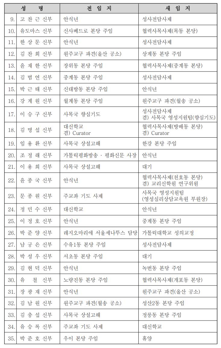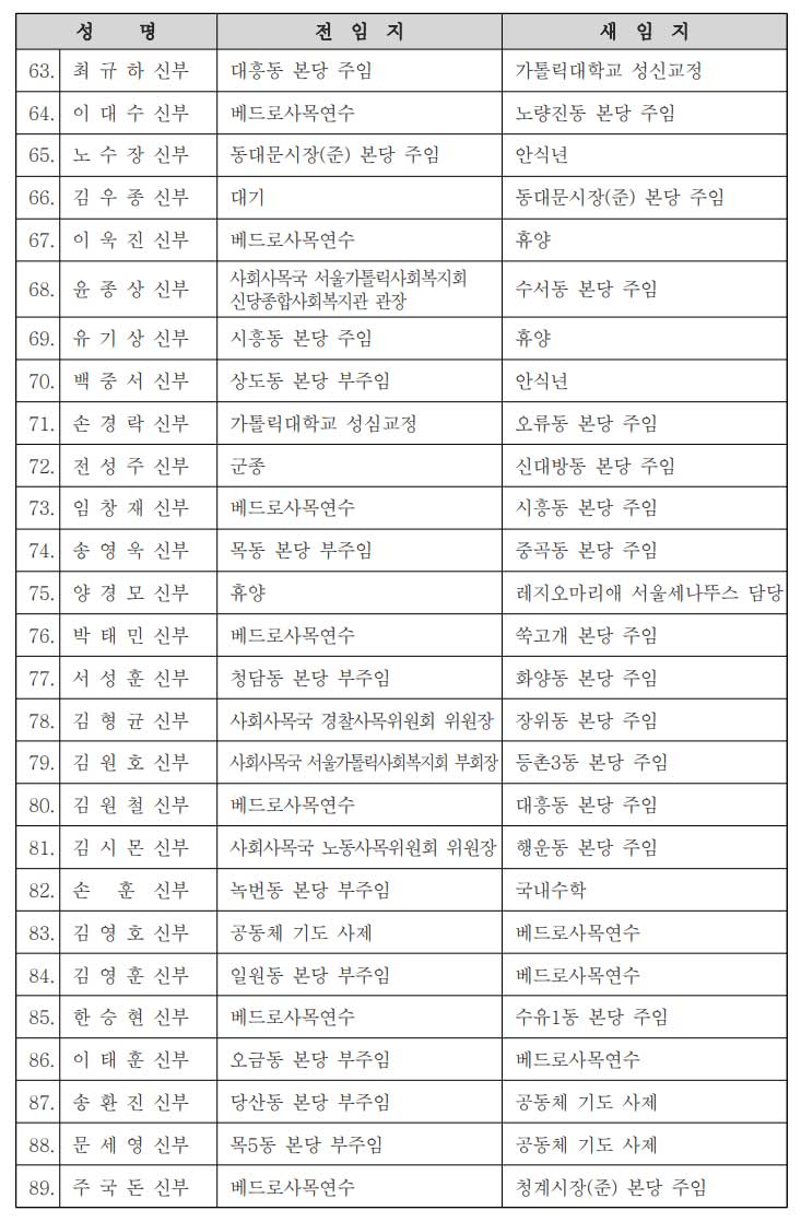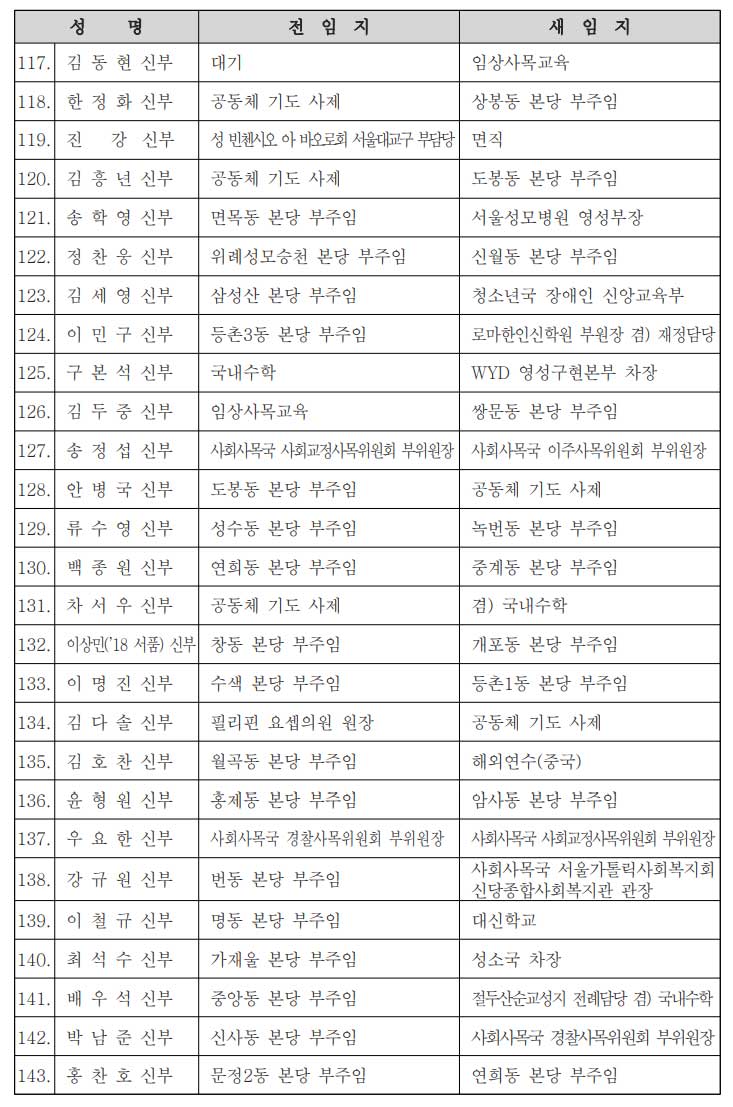 [서울대교구] 사제 인사발령 |